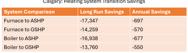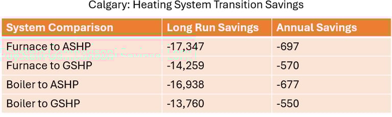 Figure 3. Comparison of energy bill savings associated with various heating technologies, Alberta.