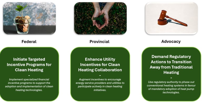 This study evaluates clean heat policies and technologies in two distinct provincial contexts: Toronto, Ontario, and Calgary, Alberta. It explores the political, technical, and socio-economic factors influencing the adoption of clean heat technologies, specifically air-source and ground-source heat pumps, and their potential impact on building decarbonization efforts. Through comparative analysis, the study identifies effective strategies tailored to each region's unique energy landscape, providing recommendations for stakeholders to advance Canada's transition to net-zero by 2050.